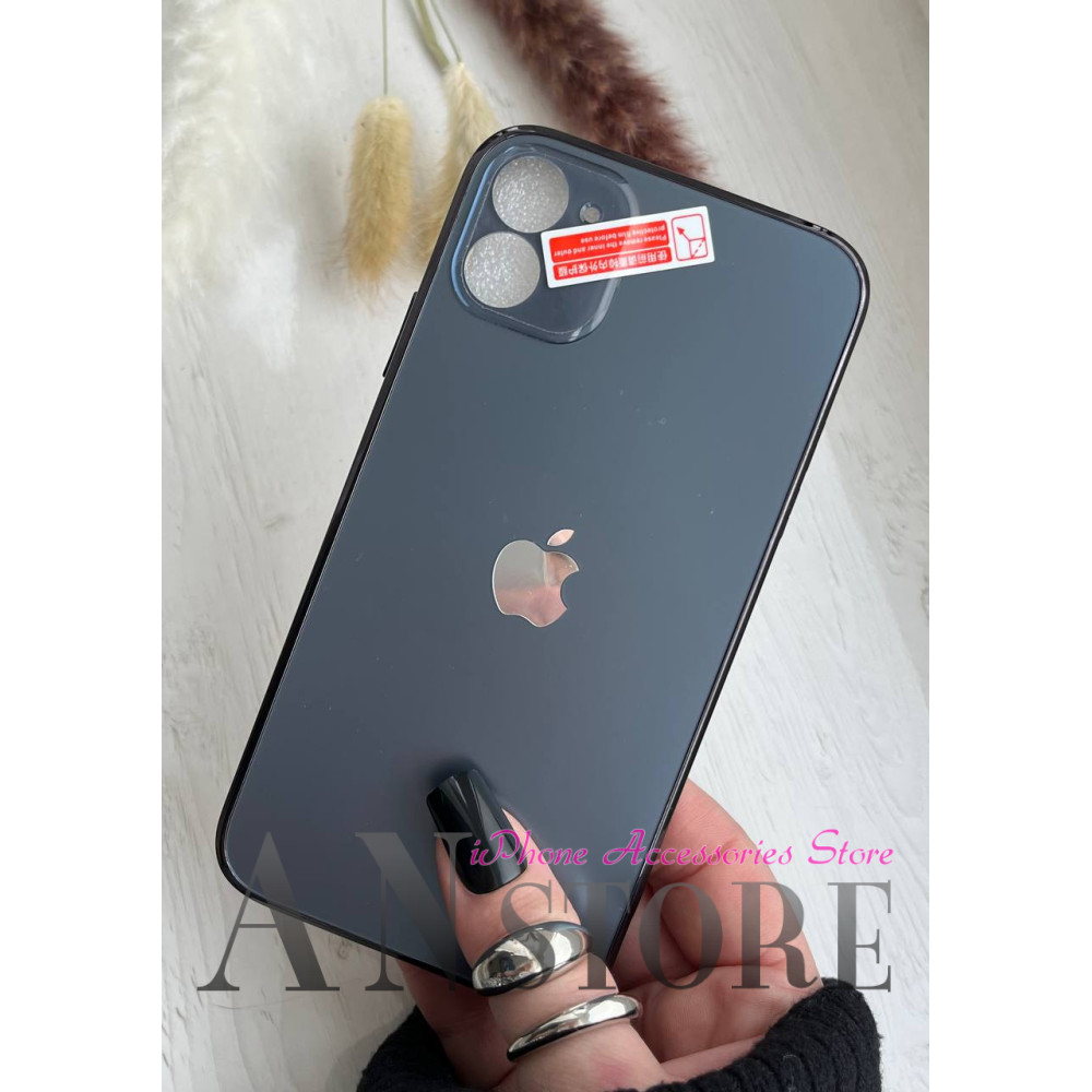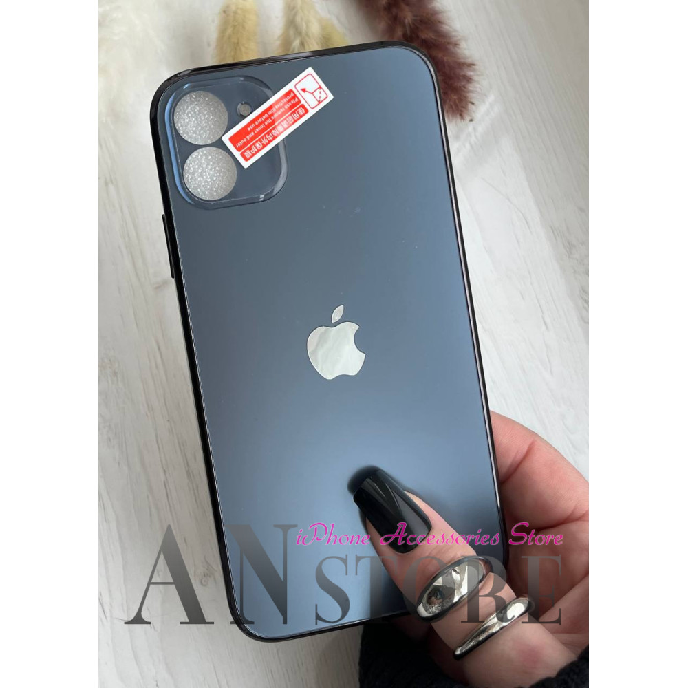 Склянний синій чохол з покриттям Premium sense з лого Apple на iPhone 11